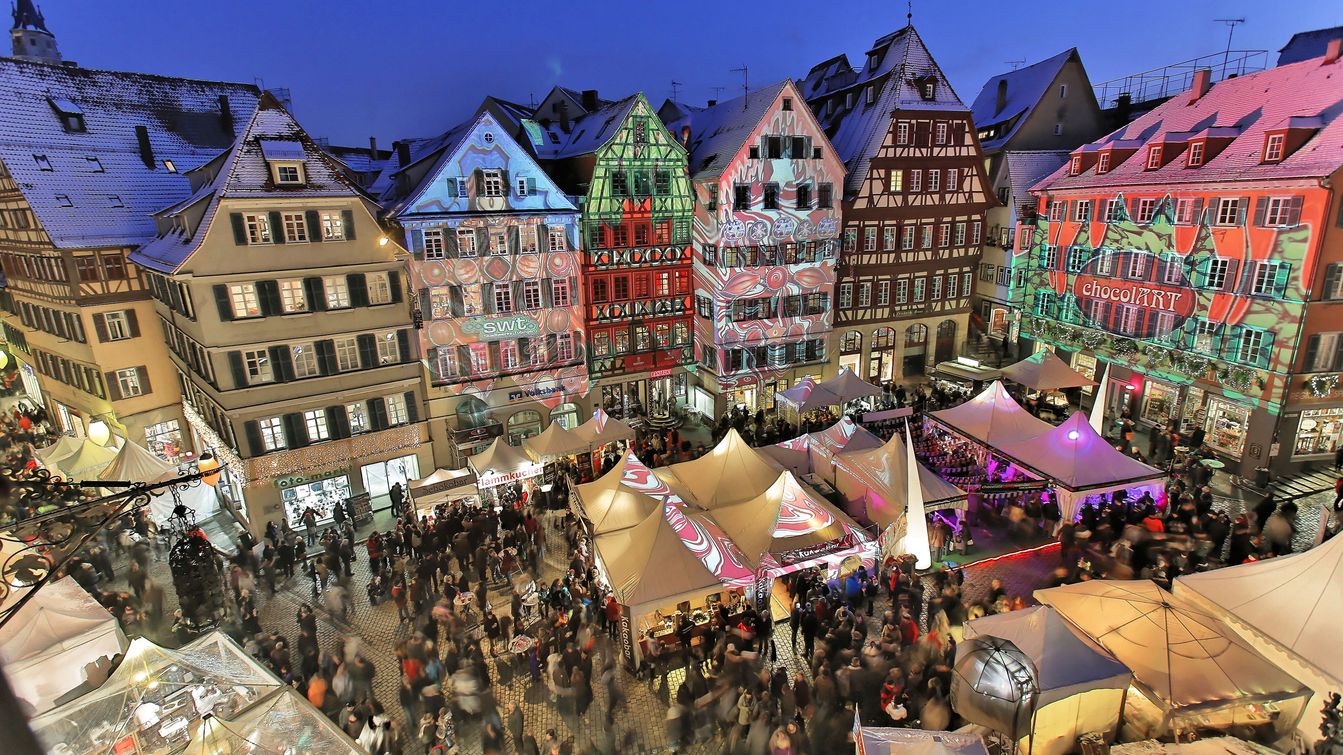 Der Dezember in Tübingen ermöglich einen ganz besonderen (Vor-)Weihnachtsurlaub in Süddeutschland. Mit festlich beleuchteten Straßen und traditionellem Weihnachtsflair bieten der Schokoladenmarkt in der 1. Dezemberwoche und der Tübinger Weihnachtsmarkt am 2. Dezemberwochenende die perfekte Einstimmung auf die Weihnachtszeit und auf Silvester in der historischen Universitätsstadt Tübingen in Baden-Württemberg.